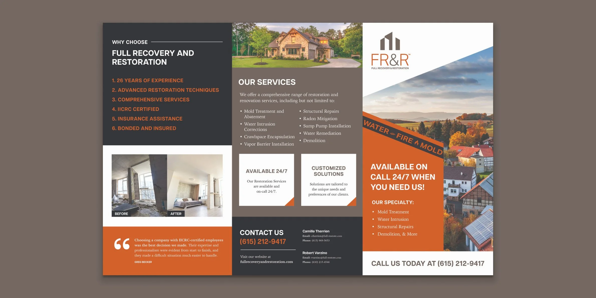 Full Recovery & Restoration (FR&R), formerly Environmental Controls, offers restoration services for homeowners in the Greater Nashville area with 26+ years of experience in the industry.